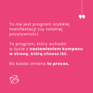 Wiedziałam, że w moim życiu są obszary w których chcę inaczej: rodzinnie, relacyjnie czy w pracy. Chcę spokojniej, z miłością i dobrocią. Chcę być zdrowa. A życie ciągle stawiało mi kłody pod nogi. Tworzyło sytuacje, które z mojej perspektywy nie miały sensu. Bo w moim sercu było dobro. To dlaczego akurat mnie to spotykało? I tu zaczęła się ta podróż, która dała mi wiele odpowiedzi…